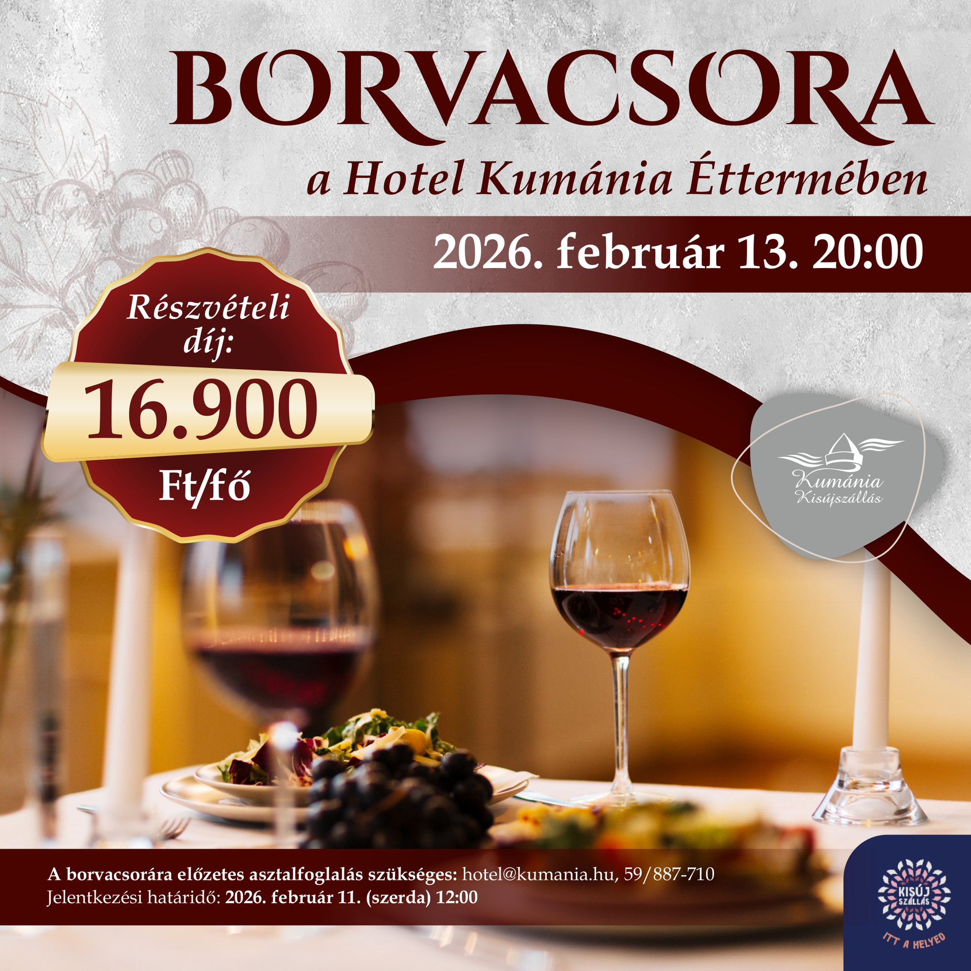 Borvacsora a Hotel Kumánia Éttermében Egy különleges este az ízek harmóniájával Valentin nap előestéjén.