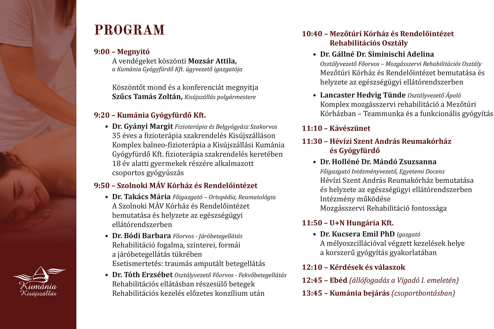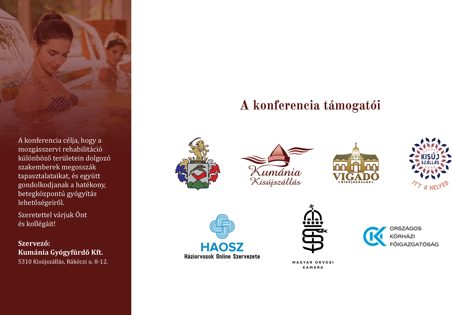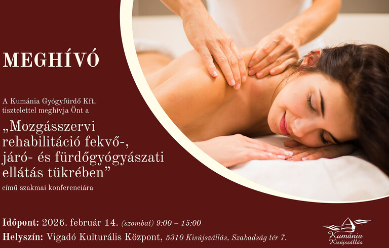 A Kumánia Gyógyfürdő Kft. tisztelettel meghív minden érdekődő orvost és egészségügyi dolgozót 2026. február 14-ére szerveztett szakmai konferenciájára!